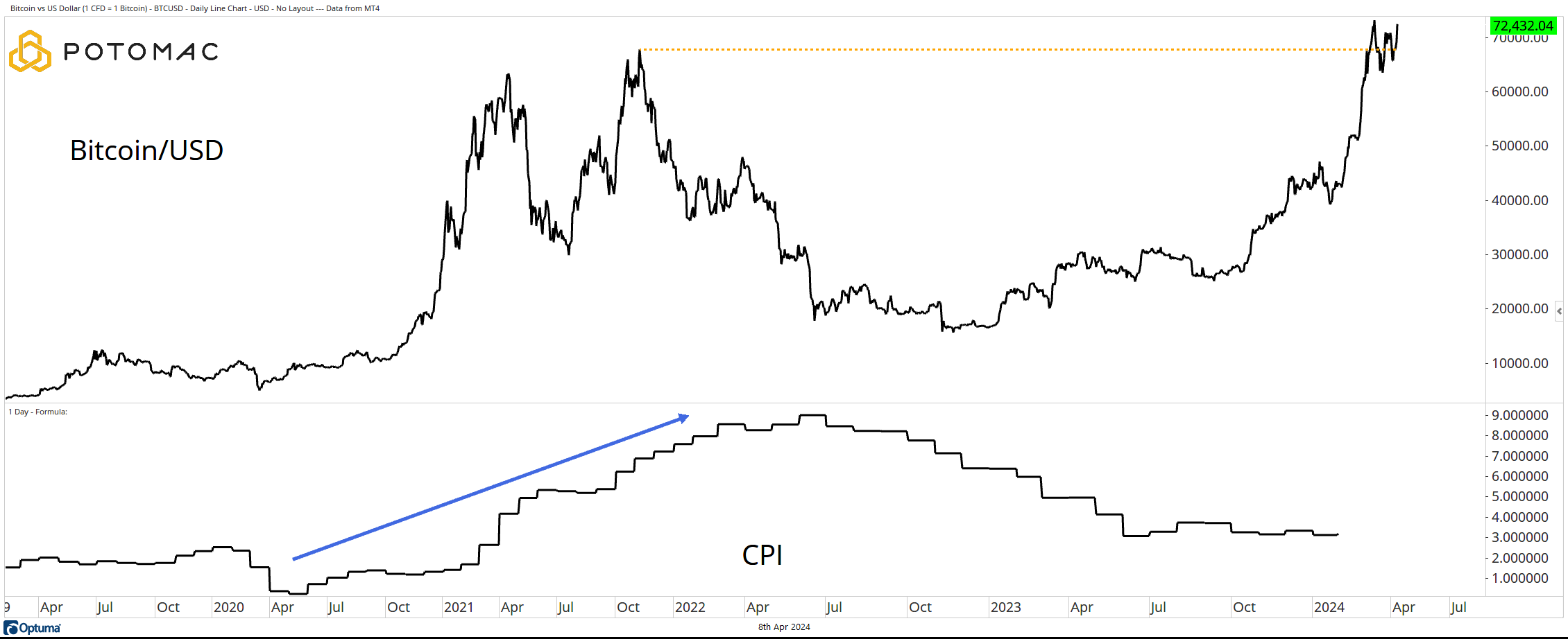 The other chart making an encore appearance after a March 18th debut is Bitcoin. Is it “digital gold?” Perhaps.