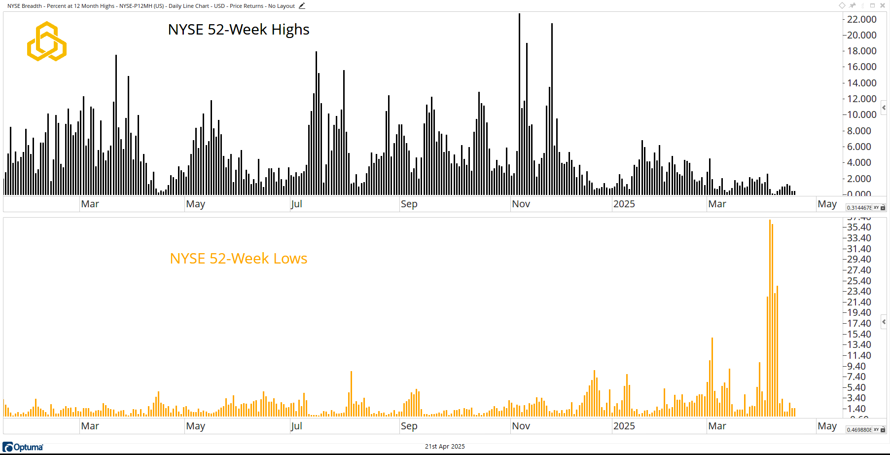 Last week brought a welcome reprieve in the percentage of NYSE stocks making new lows. This is a step in the right direction for equity bulls. However, it’s worth noting that there was no corresponding uptick in stocks making new highs.