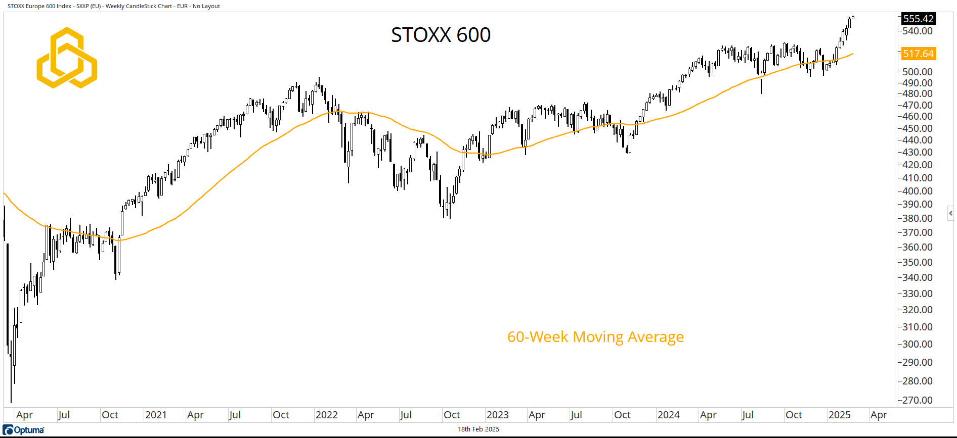 Even Europe is trading at new all-time highs. Let that sink in. It is not often that we have a chance to celebrate strong bullish trends across the pond, but here we are. After nine months of consolidation, the STOXX 600 has exploded higher, trading above a 60-week moving average that is also rising.