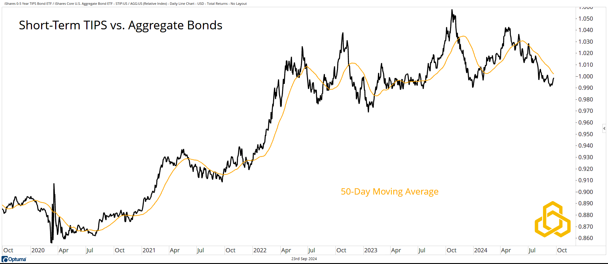 So far, the market is not concerned about a possible reacceleration of inflation. The ratio of Short-Term TIPS to Aggregate Bonds is sitting in a two-year consolidation below a declining 50-day moving average. This is a far cry from the outperformance that TIPS delivered in 2020 and 2021. An upside inflation surprise would likely catch the greatest number of investors out of position.