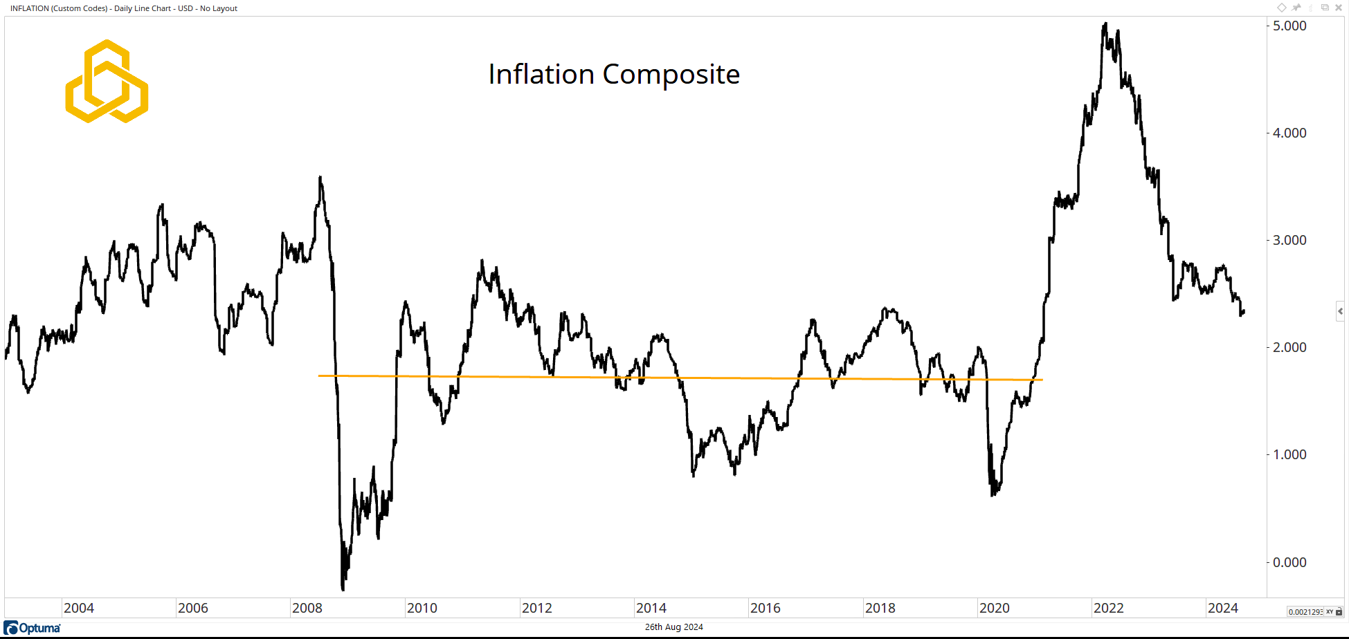 The key driver behind the market pricing in a soft landing is inflation. Our Inflation Composite has been trending lower for more than two years. Investors believe that elevated inflation levels are now in the rearview mirror. In fact, even Chairman Powell thinks that this issue is behind us, signaling that rate cuts are on the horizon during a speech last week in Jackson Hole.