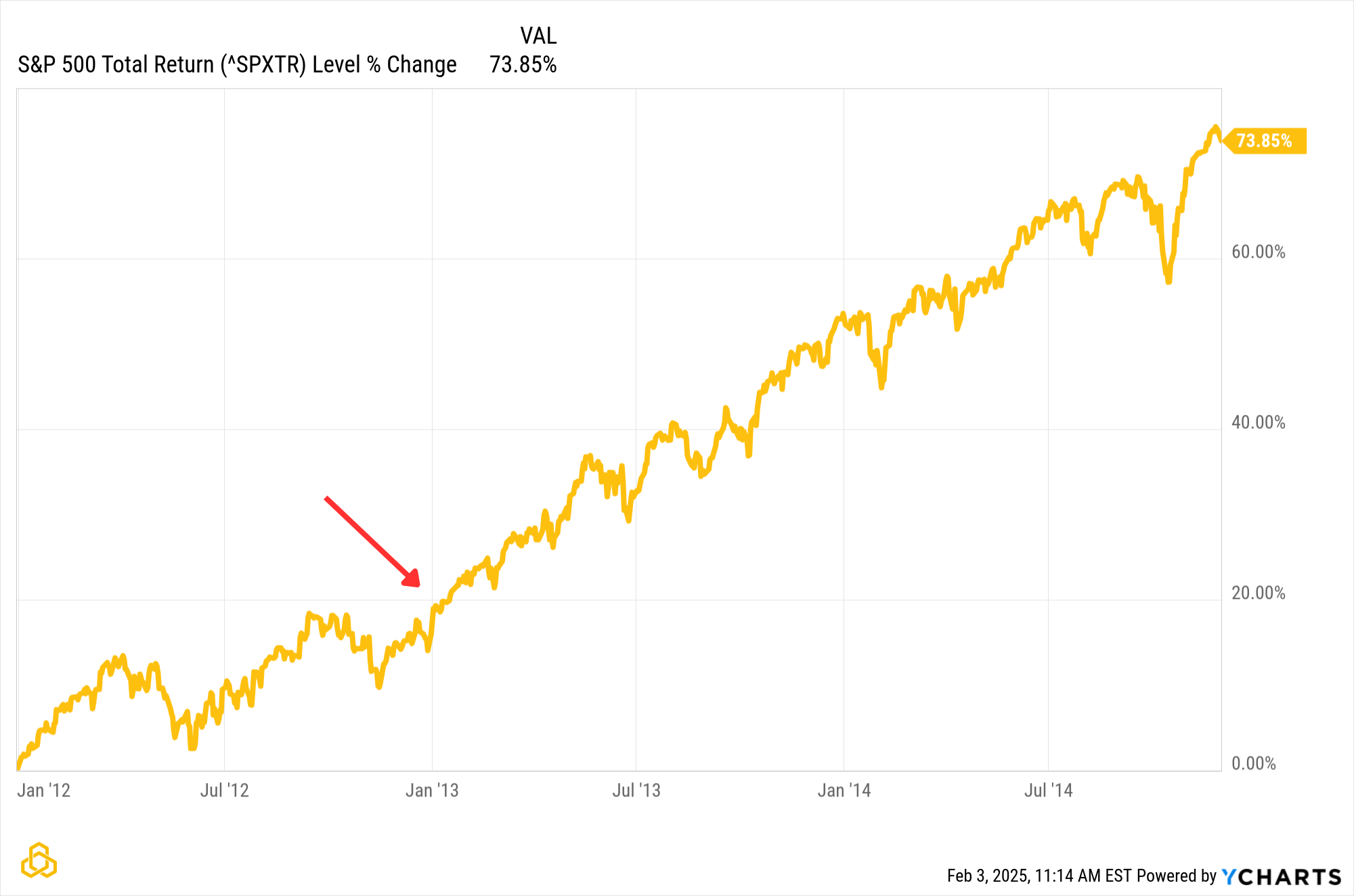 For a visual on how thrusts can potentially signal future gains, see the chart below of the S&P 500 Total Return Index.