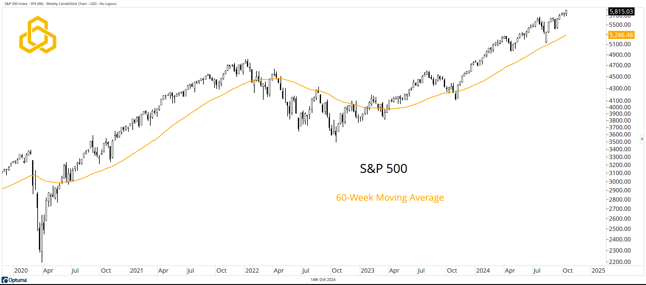 If the S&P 500 was your only gauge of “the market,” the bullish take would seem to be correct. Another new high, five positive weeks in a row, and trading above a steadily rising 60-week moving average. What’s not to like?